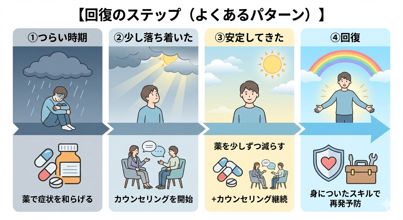 薬で「今のつらさ」を和らげながら、カウンセリングで「これからの自分」を変えていく。
